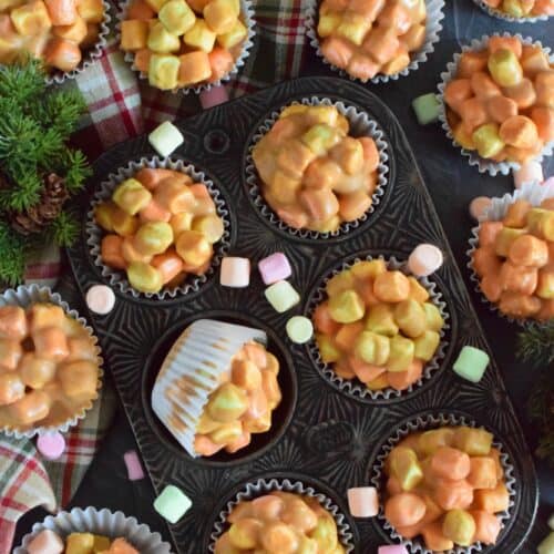 If you love marshmallows and butterscotch, then you cannot go wrong with these Confetti Butterscotch Marshmallow Cups! They are loaded with mini marshmallows and a combination of peanut butter with butterscotch chips that is just so delicious. Preparing them in muffin tin paper liners makes sharing even easier!