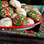 Portion the cookie dough into one tablespoon sizes. Roll into balls and then roll into the remaining sprinkles.