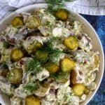 For the serious dill pickle enthusiast, Dill Pickle Potato Salad is a creamy, dill-packed side dish fit for any summertime meal! Prepared with dill pickles, fresh chopped dill, and dill pickle juice too, this salad is very dilly indeed!