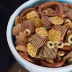 Pour the oil mixture over the cereal mixture and toss to coat. Be sure to continually toss the mixture together so that each and every piece is coated with the oil.