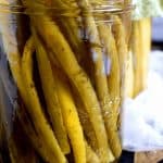 Dill Pickled Wax Beans are super dilly with a hint of salty and peppery flavour. Stock your pantry full of these for a great side dish ready to go at any time. These are perfect on a cheese board or wrapped with thinly sliced hot salami!