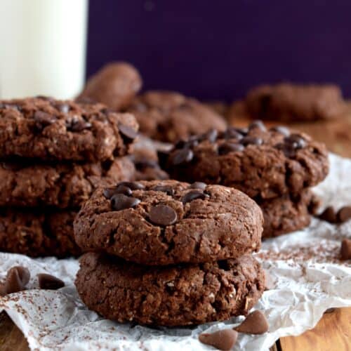 Double Chocolate Oatmeal Cookies are a chocolate lover's dream come true! These cookies are loaded with chocolate chips, heavily flavoured with really good cocoa, and a few oats thrown in for texture and good measure! Get ready to indulge!