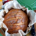 Remove from oven. Use the parchment paper to lift the bread out of the pot. Place onto a wire cooling rack to cool completely before slicing.
