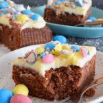 Spread the buttercream frosting evenly over the cooled cake. Top by sprinkling over the crushed Easter Whoppers.