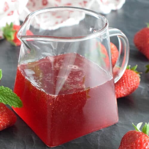 A simple syrup, sometimes referred to as sugar syrup, is in its most basic form, a liquid sugar used to sweeten things like cocktails, fruit juice, and other beverages. But, you can easily add your favourite fruit to change simple syrup to extraordinary syrup - just like in the case of this Easy Strawberry Syrup!