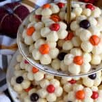 With the help of M&M candy and a cookie press, these spritz cookies look very much like a fall flower arrangement when piled high onto a serving plate.