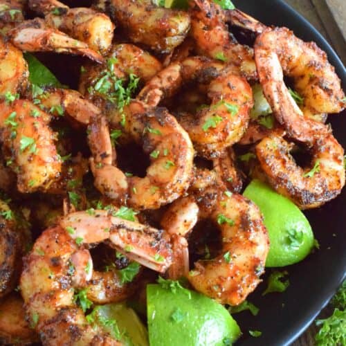 Marinated in a mixture of warming dried herbs and spices with a splash of olive oil and a spritz of fresh lime juice, these Grilled Chili Lime Shrimp are bursting with flavour! Quickly grilled over high heat to get a good sear and colour without the risk of overcooking makes it hard to stop from eating them all!