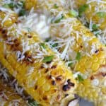 Once the corn is charred, remove from the grill and place on a serving platter.