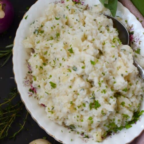 Swap out potatoes for turnips and lower both the calories and the carbs without compromising on taste! Herbed Mashed Turnip is rustic and simple, but the flavour suggests otherwise! Ground nutmeg and fresh herbs like rosemary, thyme, and sage will have you making this side over and over again!