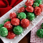 Roll the dough into balls and roll the balls into the candy or sugar sprinkles. Set on a baking sheet about 2 inches apart.