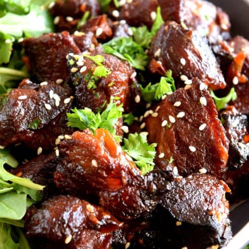 Moist and tender, with charred bits too, these Honey Garlic Baked Pork Bites are delicious and easy to prepare. Despite the long cooking time, this main is perfect for a family dinner anytime. Sweet and garlicky, with an optional kick of spice and heat. Yum!