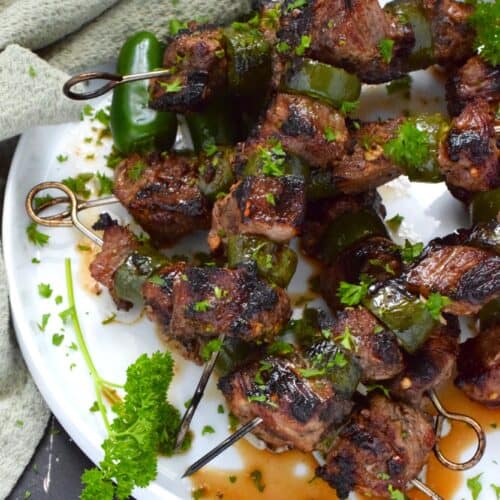 Marinated steak is skewered and grilled to perfection in this spicy Jalapeno Beef Skewers recipe. The marinade tenderizes the beef and the sliced jalapenos add flavour and spice. Quickly grilled over high heat, this beef is nicely browned and charred on the outside with a perfectly medium-cooked interior.