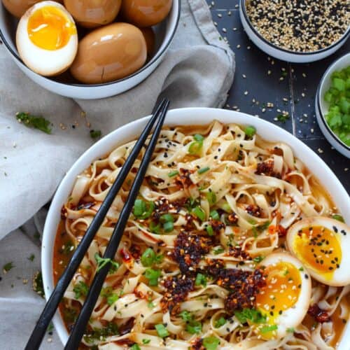 The perfect addition to any piping hot bowl of ramen or spicy noodles, Marinated Soft Boiled Eggs add flavour and texture. The velvety consistency of that golden yellow yolk offers a touch of creaminess and smoothness to soups and noodles. Try chopping a couple of these eggs over steamed rice too!