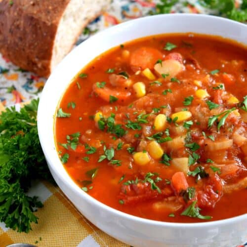 The pleasant flavours of Mexican Vegetable Soup are sure to keep you warm and cozy during the colder days of winter. Made with common root vegetables and flavoured with Mexican-inspired spices, a big bowl of this soup is sure to brighten even the dreariest of days.