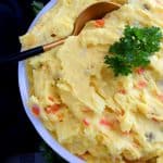 Using a hand-held potato masher, or a potato ricer, mash the potatoes leaving no lumps.