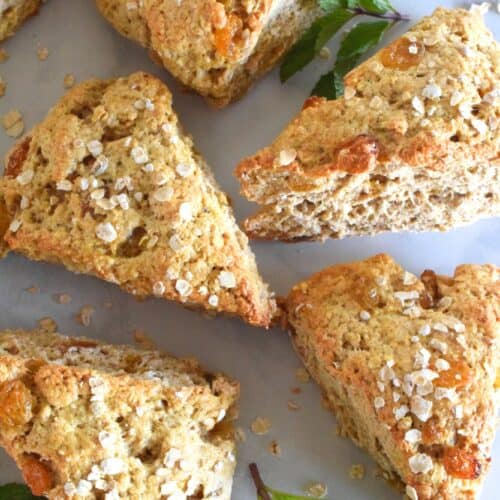 Once you master the art of a good basic scone recipe, you have a world of flavour and texture possibilities at your fingertips. Using my basic recipe, I'm able to create flavoured scones to match whatever mood I'm at that time. Today, I was craving the heartiness of oatmeal with the sweetness and chewiness of raisins. This scone is best smeared with butter and served with a hot tea!