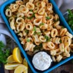 Moist and tender Old Bay Fried Calamari is a perfect appetizer or main. Prepared with pantry ingredients, serve with tartar sauce and lemon wedges for maximum flavour!