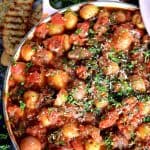One Pot Braised Potatoes in Tomato Sauce is such a comforting dish - it's very rustic and homey, perfect on it's own with grilled bread and some good, fresh parmesan.