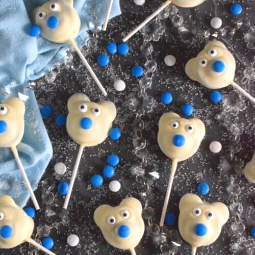 These adorable Oreo Polar Bear Pops are such a delight to make! This assembly-type recipe comes together quite easily and is a perfect holiday treat for the whole family, so get your kids involved too! No baking is required; all you need to do is melt the chocolate and you're ready to go!