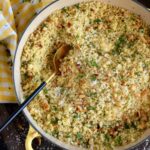 In less than 20 minutes, Parmesan and Pine Nut Couscous comes together to make the most delicious side dish. With the delicate crunch of the toasted nuts, and the salty nuttiness of the parmesan, this side tastes like high end restaurant dining, but prepared easily right in the comfort of your own kitchen!
