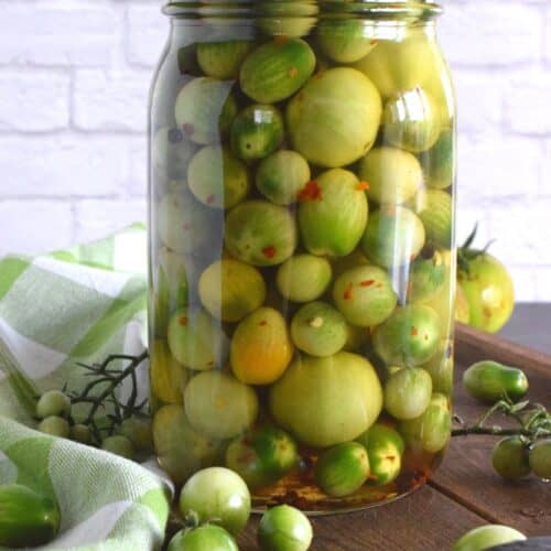 At the end of growing season, just before the first frost, harvest the last of those unripened cherry tomatoes and make a batch of Pickled Green Tomatoes! It's a shame to let them go to waste when you can make something so delicious in just a few minutes!