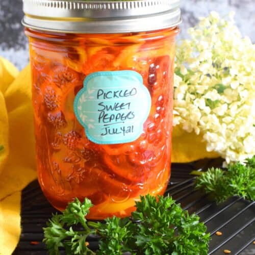 Pickled Sweet Peppers are tart, sweet, and just a little spicy. These are so easy to make and there's no canning experience needed at all! If you can boil water and slice sweet peppers into rings, you've got this!