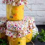 Preserved Mustard Pickles are a sweet and tart condiment or side dish made from cauliflower, zucchini, red bell pepper, onion, and carrot. A condiment so delicious, I often eat it as a side dish!