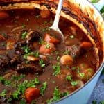Remove from oven, gently stir one last time, and roast for 60 minutes. This time, do not place the lid on the pot. Check every 15 minutes. At this point, the meat may burn and the gravy may get a little too thick. Remove from oven and serve once the gravy has reached your desired thickness.