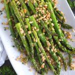 This side dish is great any time, but is best when fresh asparagus is in season. Roasted Asparagus with Pine Nuts and Parmesan has perfectly cooked asparagus with the saltiness of freshly grated parmesan and the nuttiness of delicately toasted pine nuts. Super fast, super yummy, and super easy!