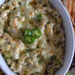 Cheesy, creamy, and baked until hot and bubbly, Roasted Jalapeno and Artichoke Dip is one of those dips you need to prepare for game day, an evening with friends, or a quiet movie night at home with family.