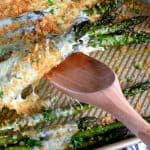 Roasted Mozzarella Asparagus is a cheesy and garlicky side dish with gooey, melted cheese and buttery, crunchy crumb topping. Everyone will want an extra helping of this super easy and delicious side!