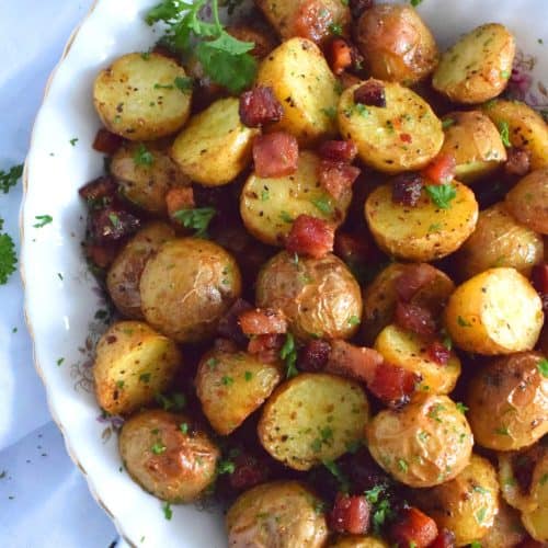 Fast, easy, simple, and delicious is how I would describe these Roasted Pancetta Potatoes. Great for brunch or breakfast, but also a great side dish to a main for dinner. The potatoes are perfectly roasted with a soft, steaming hot interior and a browned, slightly salty and savoury exterior - who wouldn't love that!?