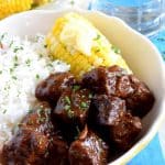 Slow Braised Barbequed Beef Bites are tender and moist with just the right amount of heat and sweet. This recipe is the perfect way to enjoy deep barbeque flavours without grilling.