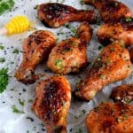 Remove the chicken from the oven and use a pastry brush to coat the tops of the drumsticks with the sauce mixture. Use about half of the sauce at this point. Return to the oven and bake for 20 minutes.