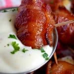 Place a tater tot at the end of one slice of bacon and firmly, but gently, roll the bacon around the tater tot. Secure by piercing the bacon and tater tot with a toothpick.