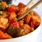 Add the sesame seeds and the green onions. Toss once more until well combined. Allow the skillet to simmer for 2-3 minutes until the sauce and tofu are heated through.