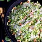 This non-traditional coleslaw consists of uncooked shaved Brussels sprouts which have been tossed with toasted cashews in a homemade tangy and zesty sauce.
