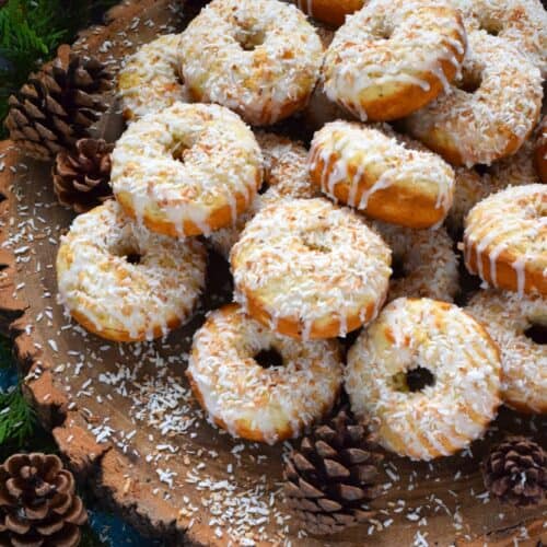 In our home, Christmas would not be Christmas without a confection prepared with coconut and these Toasted Coconut Donuts hit the mark! These are baked and not fried so they are super light! Imagine an old-fashioned glazed donut but with the addition of nutty, crispy toasted coconut - yum!