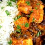 Once done, add all of the tikka masala sauce and the black beans. Stir to combine. Lower the heat to simmer. Simmer the mixture for 4-5 minutes.
