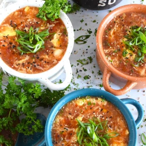 This quick and easy savoury Tomato Egg Drop Soup is prepared from start to finish in about 20 minutes! Better than the soup they serve at your favourite Chinese restaurant, and with an optional splash of hot sauce, the cozy and warm soup is hearty and healthy too!