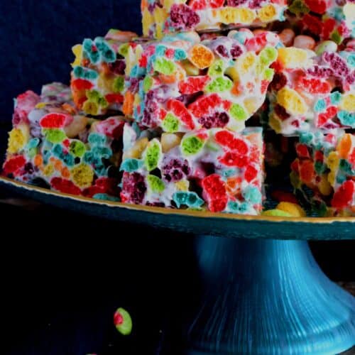 Eye-popping and attention-grabbing, Trix Cereal Treats are the perfect recipe for spending time in the kitchen with children, and they make a very delicious Easter treat too! Not only are they fun and whimsical, but they are also super gooey too!