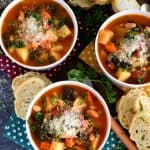 Remove the bay leaves and ladle the soup and top with a generous sprinkling of parmesan cheese. Serve with crusty bread.