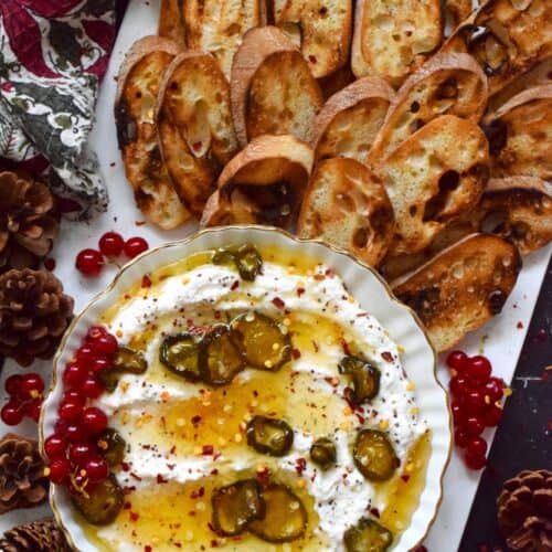 When you whip ricotta with garlic, onion, oregano, and sour cream, not only is the flavour incredible, but the texture is silky smooth. Topped with homemade Jalapeno Honey, this dip is cool and spicy at the same time. Serve with your favourite crackers and bread.