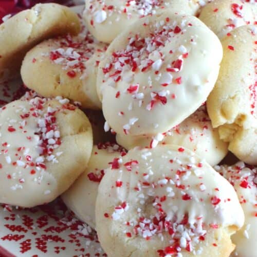 Love the combination of peppermint and chocolate? Who doesn't!? White Chocolate Peppermint Cookies are loaded with peppermint flavour from both the extract and the crushed candy canes. These are not only packed with white chocolate chips, but they're dipped in melted white chocolate too and topped with more crushed candy canes for good measure!